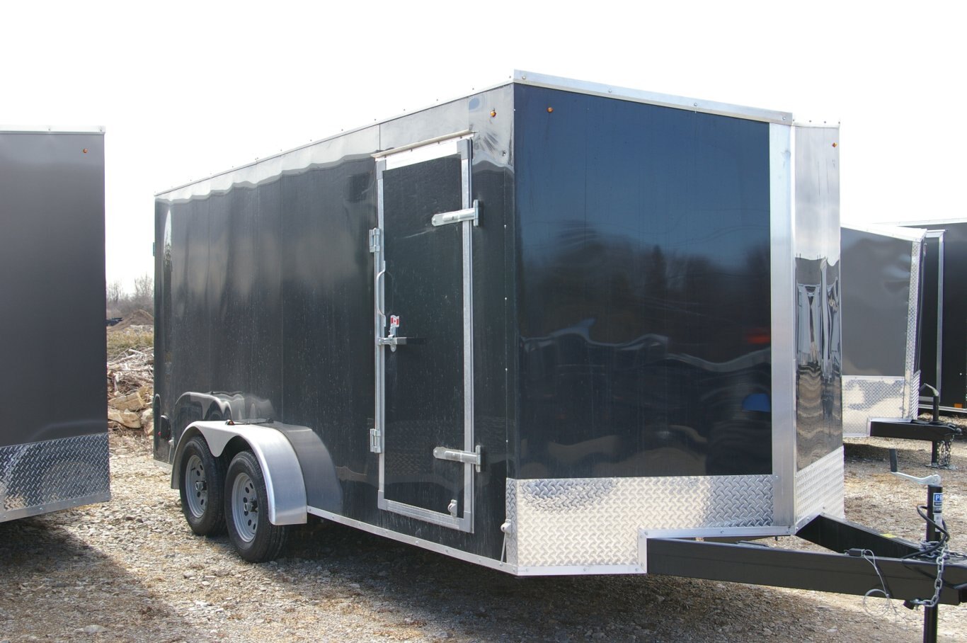 2025 7X16 CARGO TRAILER, TANDEM AXLE, BARN DOORS, 78", BARN DOORS, STEEL, BLACK, 7055GVWR