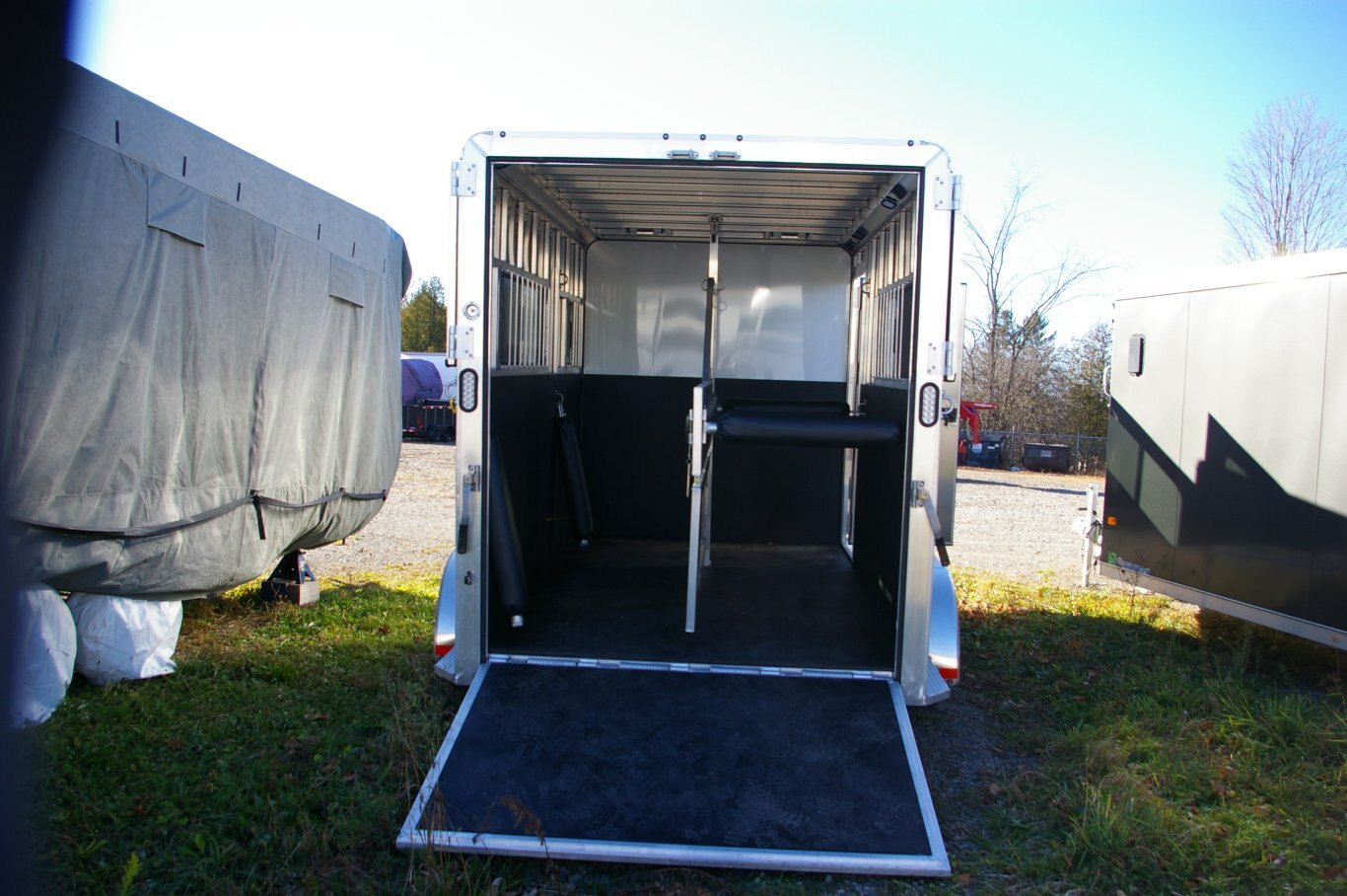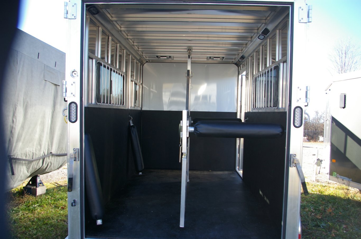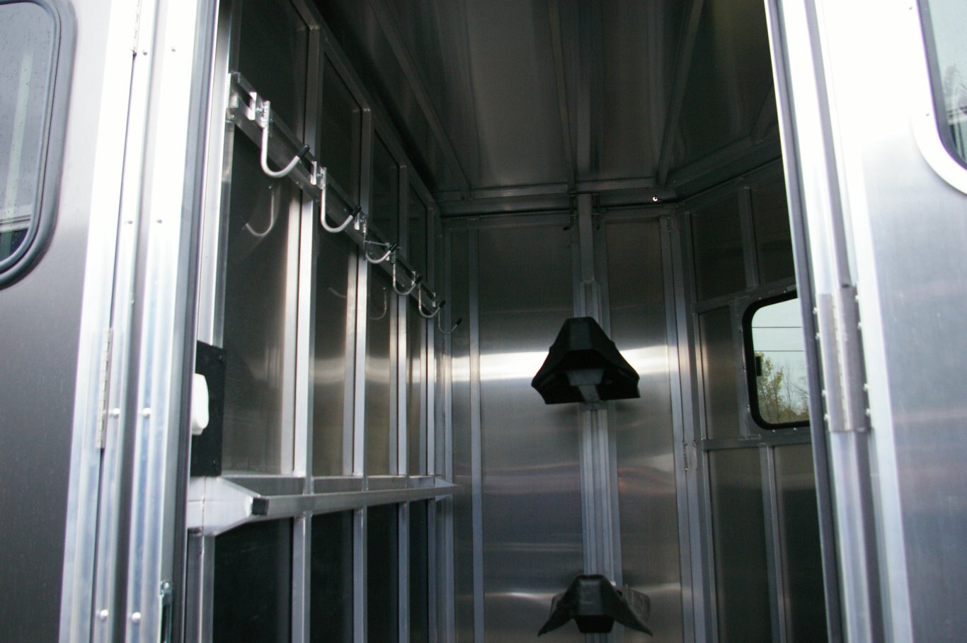 STANDARD FEATURES 2 HORSE TRAILERS AMBASSADOR 67” LITE BP STRAIGHT LOAD SERIES Silver Mods., 225/75R15 - 6 Lug Wheels One Piece, .040 Aluminum Roof w/ Heavy Duty Radius Roof Extrusion Newly Designed Straight Load (Removable) Dividers w/ 2”x3”Heavy-Wall Upright, includes Shoulder Divider, Straight Divider w/ Pad sand Padded Breast & Butt Bars (1) 32”x78” Escape Doors w/ Sliding Window (Screens and Bars) C/S& 18”x24” Sliding Window w/ Bars and Screen D/S Large Sliding Windows w/ Screen and Bars (53”x19”), Per Stall 1/2” Rubber Mats Heavy Duty Wall Liner in Horse Area (2) Inside & (1) Outside Tie-Ring, Per Horse (3) LED Dome Lights w/ Toggle Switch Double Action Pop-up Vent Per-Stall 32”x78” Tack Storage Door 14’8” Floor, 6’8” Wide, 7’6” Tall, 37-1/2” Stall Width, 84” Stall Length Bumper Pull, V-Nose, 24” Stone Guard Improved All Box Tube Aluminum Chassis 2”x8” Pressure Treated Decking .040 Pre-Painted Exterior Side Sheets, Full Length Running Boards Tandem 3.5K Braked, Dexter Leaf Spring Axles Spring Loaded Rear Ramp (Rubber Lined) w/ Wrap Around Tail Curtains & Aluminum Hardware w/ Huck Bolts & Locking Hasps Tack Room Features - 67” Tack, Rubber Mats, LED Dome Light, Removable Saddle Tree, Bridle Hooks, Brush Tray, & Wall Mounted Blanket Bar, (2) 24”x18” Sliding Windows w/ Screen (V-Nose) 5-Year Limited Warranty