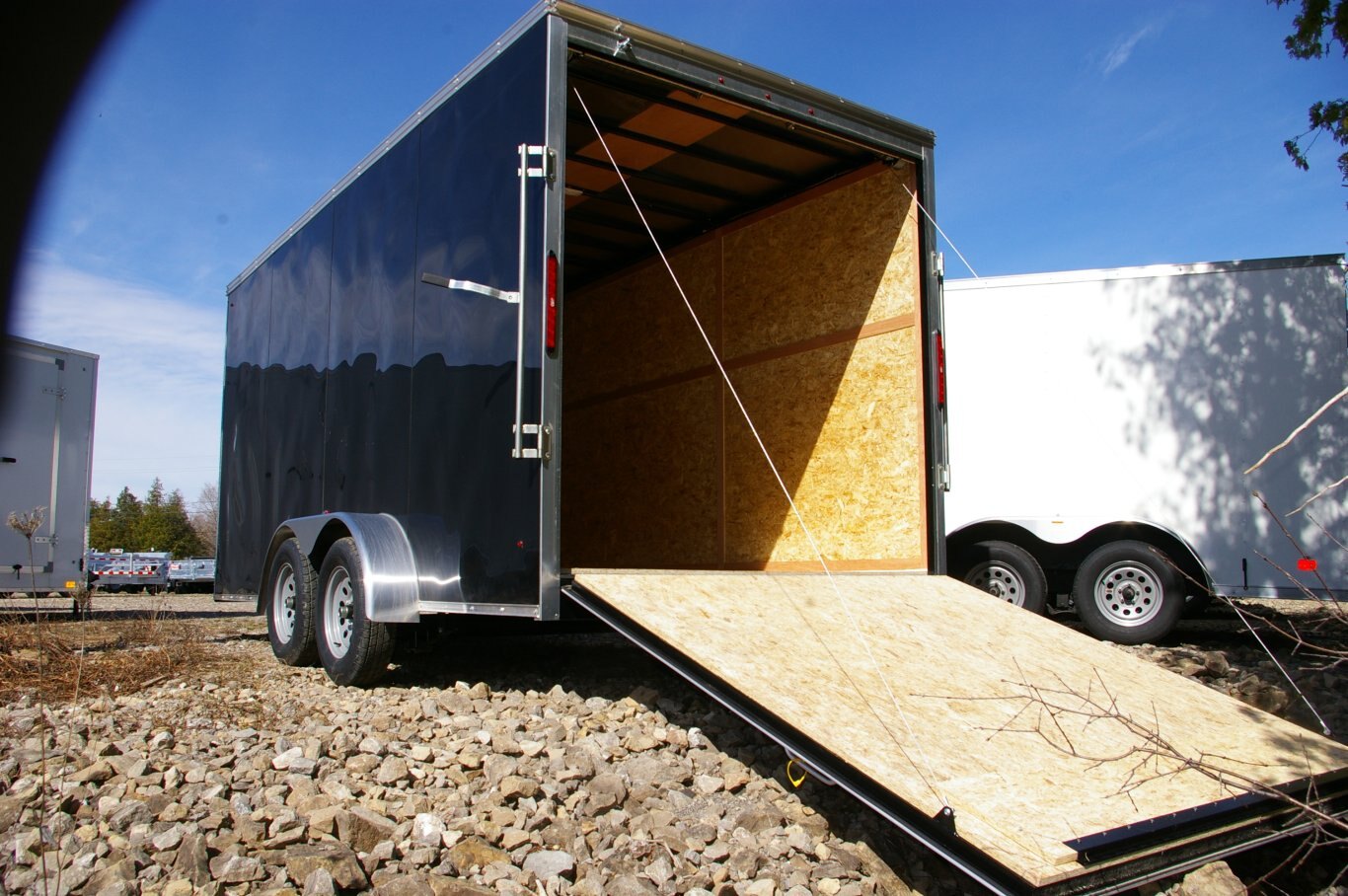 2025 7X16 CARGO TRAILER, TANDEM AXLE, REAR RAMP, 84", REAR RAMP, STEEL, BLACK, 7055GVWR