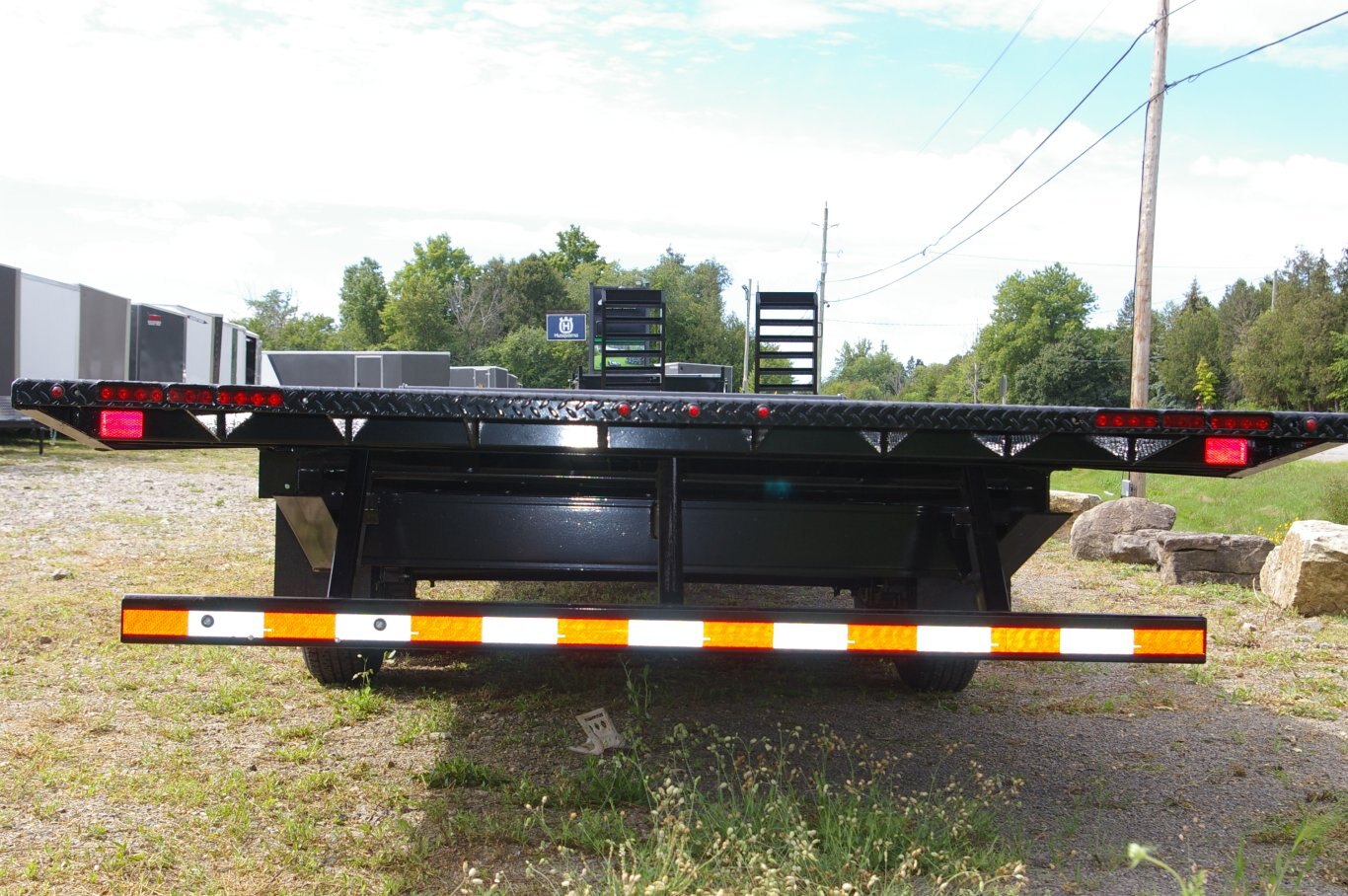 | HOIST FEATURES: | Electric Over Hydraulic Full Deck Power Up/Power Down Tilt 20' Hand Remote 5" Hydraulic Cylinder Interstate Extreme Cycle Battery and Plug In Charger Lockable Steel Toolbox |
