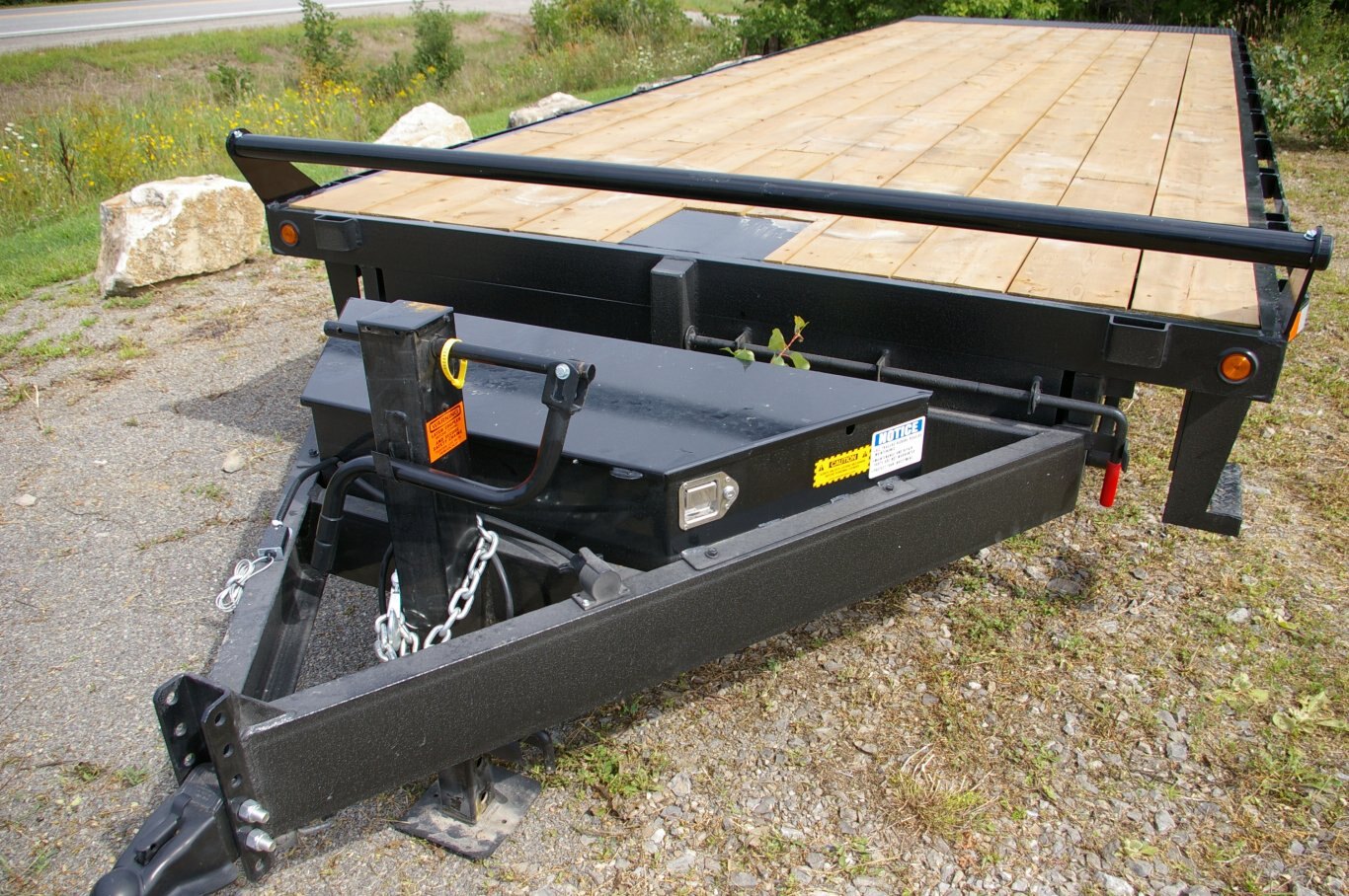 | FRAME: | 7" Channel Tongue 7" Channel Lower Main Frame Upper Deck - 10" I-Beam Inner Main Frame Upper Deck - 5" Channel Outer Frame 3" Crossmenbers spaced 16" OC 24" Checkerplate Knife Edge |