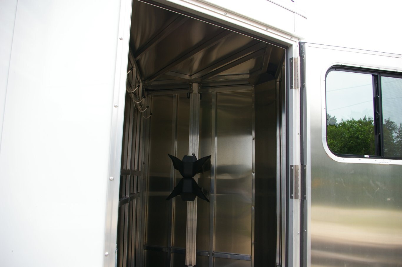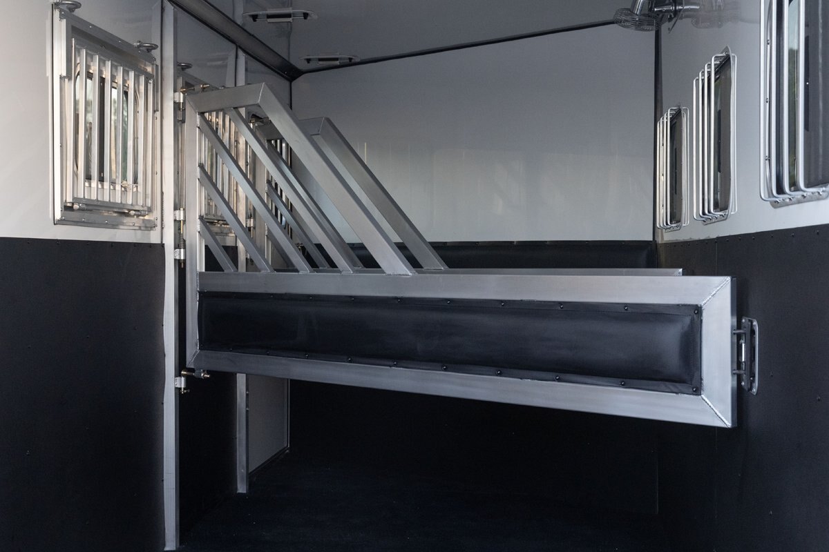- Tack Room: 36" Short-Wall; 1/2" Rubber Mats; (1) LED Dome Light; Removable Saddle Tree w/(3) Saddle Racks; (6) Adjustable Bridle Hooks; Brush Tray