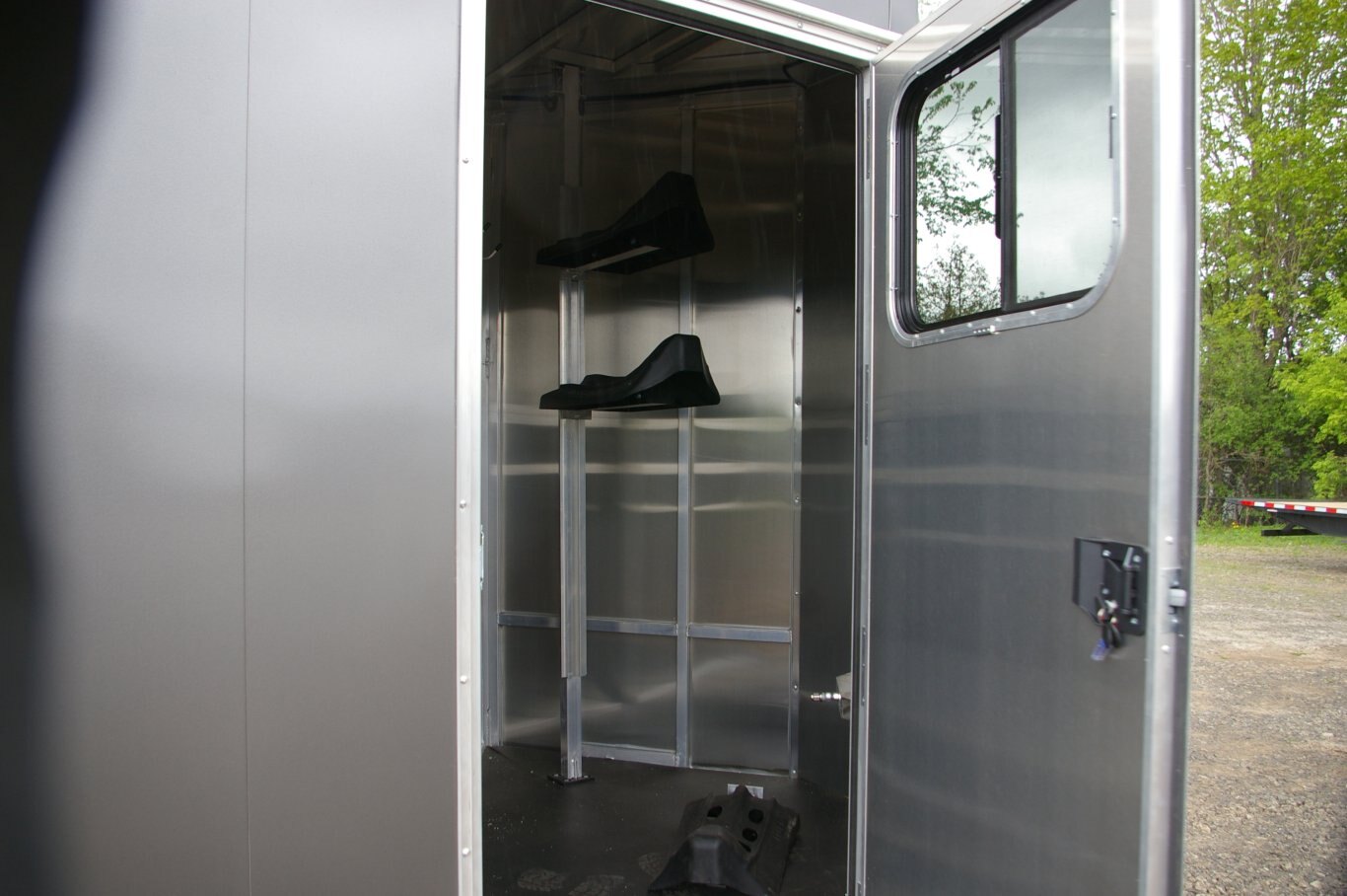 • Front Tack Area: 32” x 72” Rear Access Door w/Sliding Window, 0” Short-Wall, 1/2" Rubber Mats, LED Dome Light, Removable Saddle Tree, Bridle Hooks, Blanket Bar